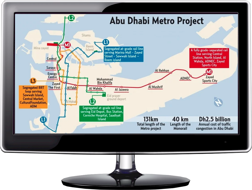 Abu Dhabi Metro Project: RFP, Tender Process for Consultancy Services, Feasibility Study, Concept Design, PE-Design, Tender Documents, over 130 km Feasibility Study, 20 km and 12 Stations PE